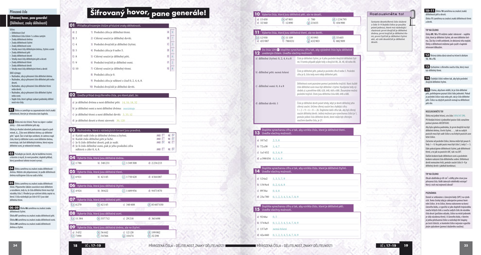 - Největším přínosem pro vyučující je část věnovaná jednotlivým kapitolám pracovního sešitu. Tato část obsahuje všechny relevantní strany pracovního sešitu doplněné po stranách komentáři. Součástí těchto komentářů je doplnění výkladu, zdůvodnění našeho pojetí, řešení úkolů, doplňkové úkoly, poukázání na provázanost s jinými tématy a kapitolami, tipy na práci v hodině, ozřejmění cílů cvičení apod. Přímo na vložených stránkách pracovního sešitu je pak vepsáno řešení úkolů (barevně odlišeno pro případ jednoznačných odpovědí případ, že jde o úkol s více možnými řešeními).