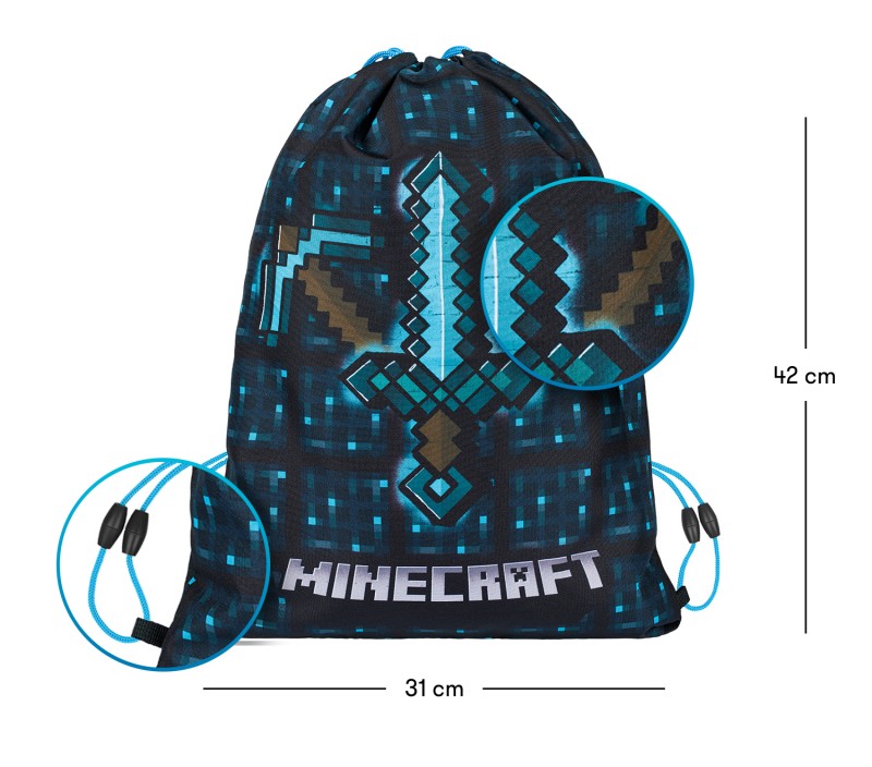 Sáček na obuv či tělocvik s motivem populární počítačové hry Minecraft v modré barvě.