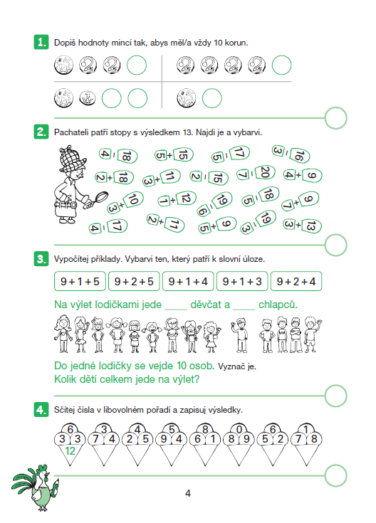 Pracovní sešit slouží k efektivnímu rozvíjení matematické gramotnosti. Obsahuje zábavná cvičení, slovní úlohy a další úkoly k procvičování počítání do 20 s přechodem přes desítku. Volně navazuje na učivo Matematiky, které obsahují sešity č. 4/A a 4/B ALTER. Určeno pro 1 ( 2.) ročník ZŠ.