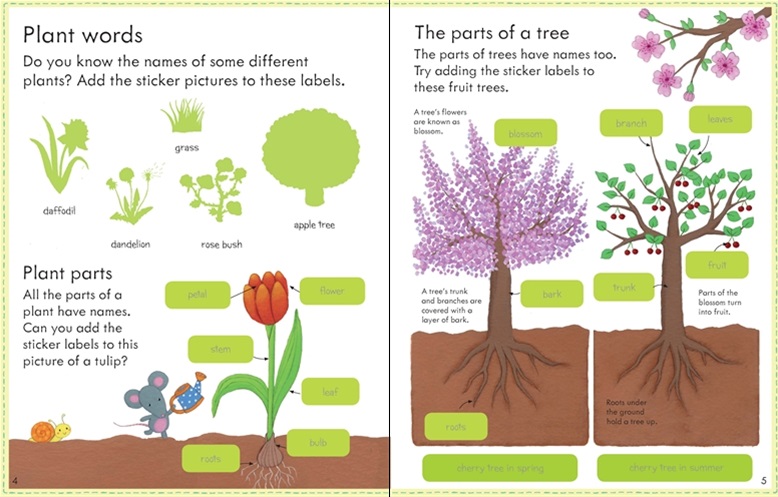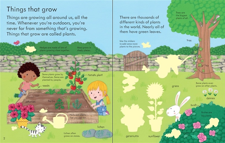 Anglická kniha plná slovíček a informací o světě přírody. Děti se dozví, jak slunečnice vyroste ze semínka, vlčí máky kvetou a vytváří semínka, jak roste zelenina a jak hmyz a zvířata pomáhají rostlinám. Kniha s více než 120 samolepkami, plná úkolů, kvízů, hledání a pojmenovávání různých věcí. Naleznete i odkazy na internetové stránky s podobným obsahem.