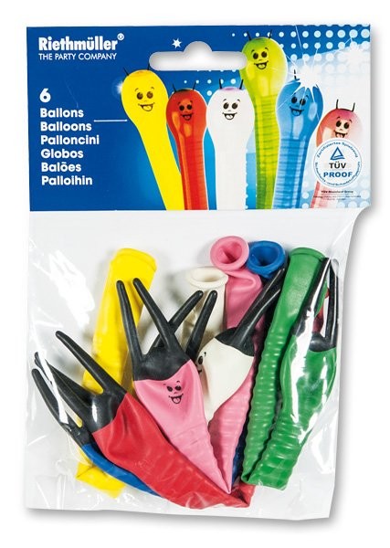 Nafukovací balónky s motivem housenky. Mix barev, 6 kusů.