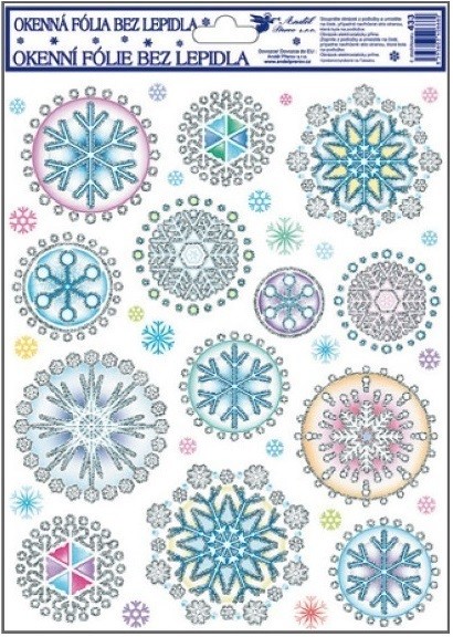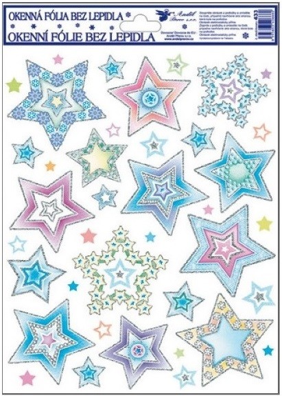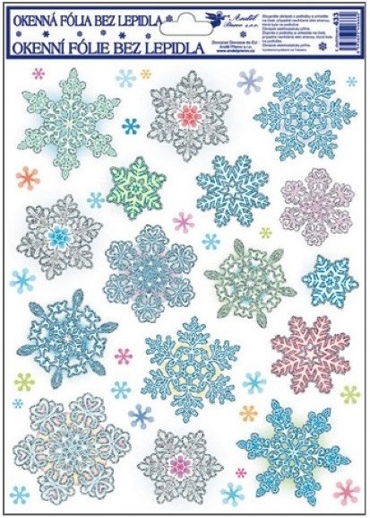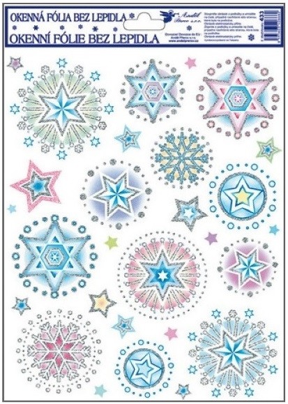 Okenní fólie barevné vločky a hvězdy 27x20cm