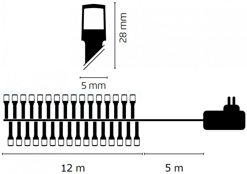 Osvětlení vánoční 12m-120 LED teplá bílá+5m přívodní kabel