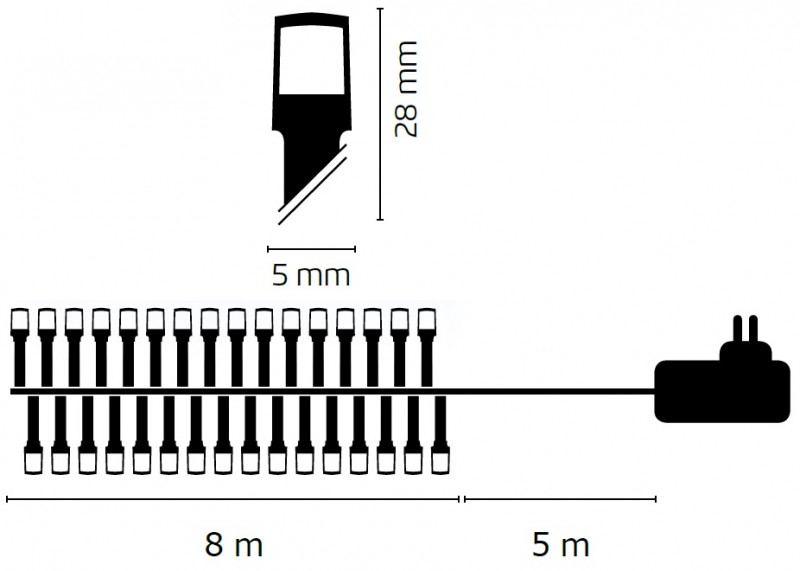 Osvětlení vánoční 8m-80 LED teplá bílá+5m přívodní kabel