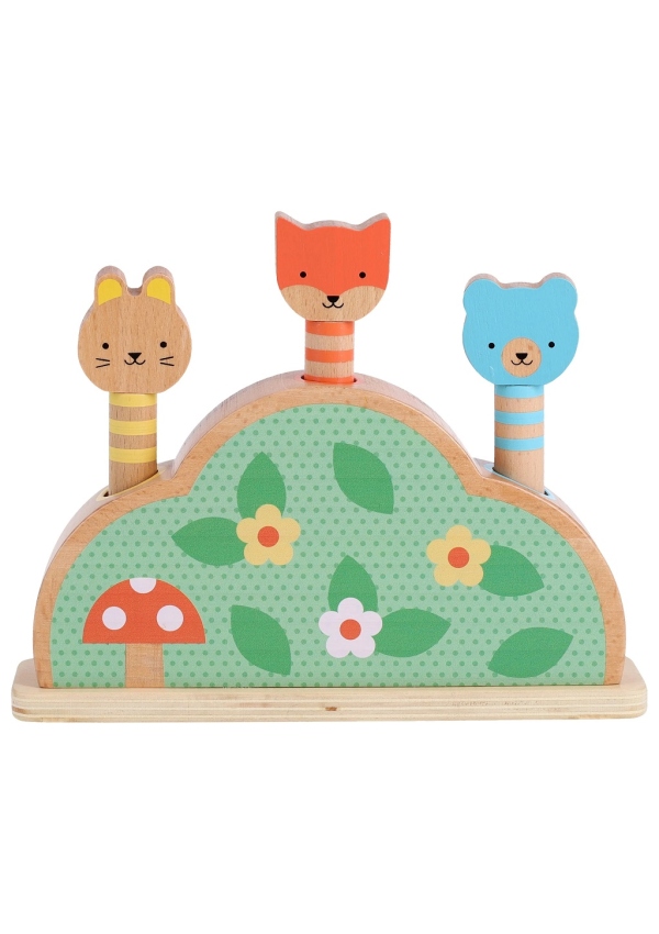 Tlačte, mačkejte a zažijte úžasnou zábavu s touto robustní dřevěnou hračkou. Děti si tuto hru zamilují! Obsahuje tři postavičky kolíčků a základnu odrazového můstku. Zvířátka jsou nabitá pružinou a připravena na vyskočení ze svého pelíšku. Hra rozvíjí jemnou motoriku, koordinaci rukou a očí,...