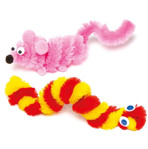 7 různých barev - růžová, žlutá, zelená, světle modrá, fialová, hnědá a černá. Drátky lze snadno ohýbat a tvarovat. Délka drátků je 30 cm a šířka 15mm, ochmýření je dlouhé, ideální pro tvoření zvířátek, pro různé zdobení a další kreativní činnosti.