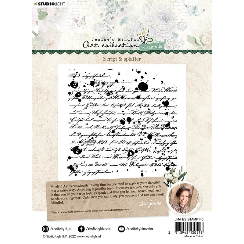 Pozaďové gelové razítko s motivem psacího písma s kaňkami, které se díky své velikosti velice hodí na projekty čtvercového tvaru.