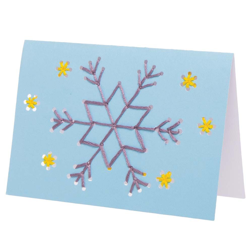 Vánoční přání, které si ozdobíte výšivkou! Sada obsahuje 6 karet v různých barvách s připraveným vzorem k vyšití, dále 7 různých bavlnek (světle modrá, fialová, levandulová, tmavě modrá, růžová, bílá a žlutá), plastovou jehlu. Velikost složených přání je 15cm x 10.5cm.