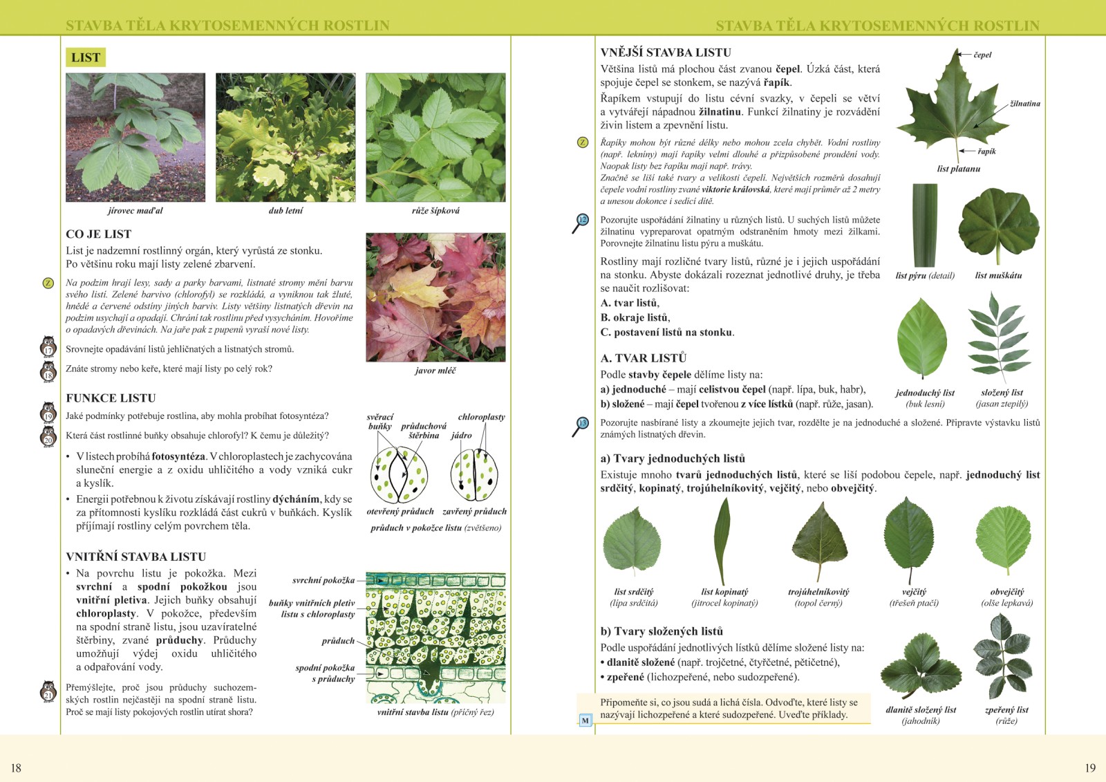 Úvodní část učebnice je věnována třídění rostlin a jejich zařazení do systému. Největší pozornost je věnována krytosemenným rostlinám, na jejichž příkladech je popsána stavba rostlinného těla. Žáci se seznámí s rostlinami v nejznámějších ekosystémech, které už znají z učiva zoologie. Úvodní část učebnice je věnována třídění rostlin a jejich zařazení do systému. Největší pozornost je věnována krytosemenným rostlinám, na jejichž příkladech je popsána stavba rostlinného těla. Žáci se seznámí s rostlinami v nejznámějších ekosystémech, které už znají z učiva zoologie. V první části se učebnice zjednodušenou formou zabývá systémem rostlin. U krytosemenných rostlin se podrobněji probírá stavba jejich těla. Větší část učebnice se věnuje jednotlivým ekosystémům. Žáci probírají dílčí představitele rostlin každého ekosystému a přibližují si je prostřednictvím zajímavostí o rostlinách v lese, na louce, v parku apod. Učivo o ekosystémech navazuje na to, co už žáci znají o živočiších. Jednotliví zástupci živočichů se v učebnici stručně zopakují a začlení za pomoci potravních řetězců do vztahů s rostlinnou říší.