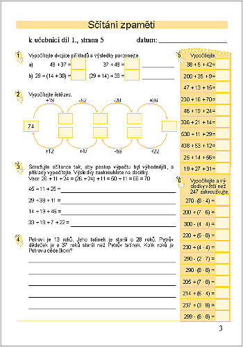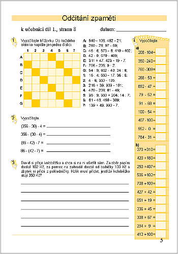 Třídílný procvičovací sešit je součástí souboru Matematika pro 4. třídu ZŠ. Procvičovací sešity jsou plné úkolů, které je možno používat k samostatné práci i jako domácí úkoly. (MŠMT ČR pod č.j. 4708/2010-22)
