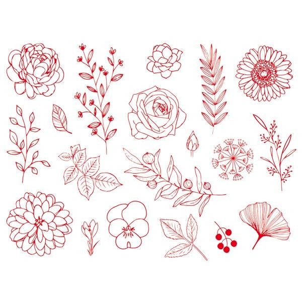 Sada obsahuje univerzální gumová razítka s motivy květin na pěnové hmotě s hlubokou texturou. Jsou vhodná zejména na potisk textilu. Razítka můžete použít jednotlivě i jako celek. Motivy se velmi pěkně doplňují.