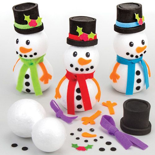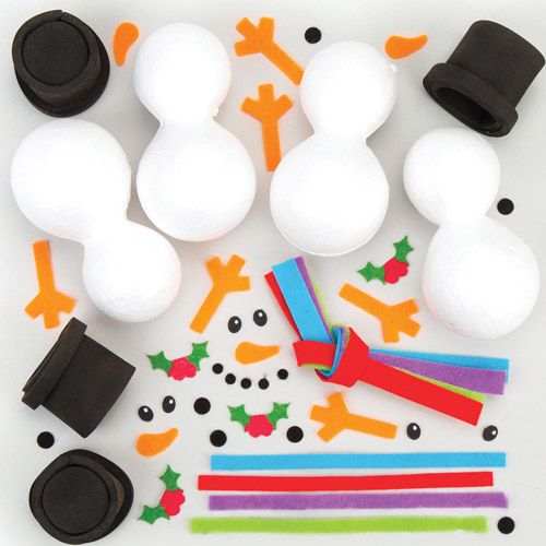 Postavte si sněhuláka, který vám nikdy neroztaje. Sada obsahuje polystyrenové koule, plstěné ozdoby v různých barvách a tvarech, pěnový klobouk, lze postavit 4 různé sněhuláky, velikost 14cm