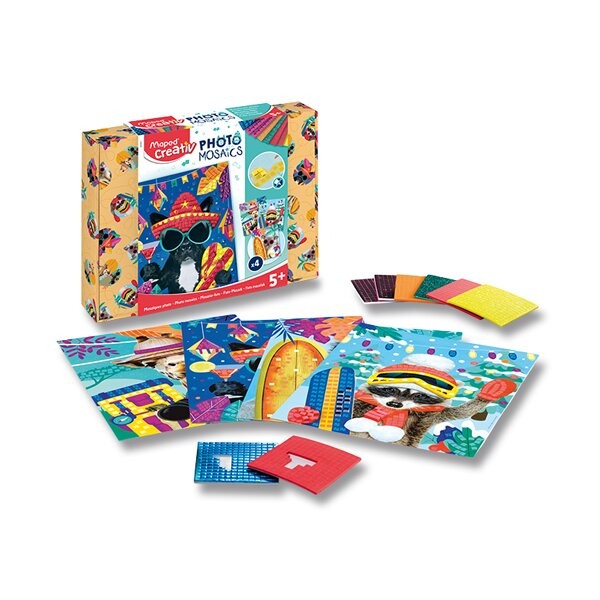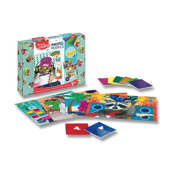 Dětská kreativní sada Maped Creativ Photo Mosaics s mozaikou. Roztomilá zvířátka čekají na dozdobení pomocí lepicích mozaikových kostiček. Pestrá a zábavná aktivita, která rozvíjí dětskou zručnost a jemnou motoriku. Vhodné pro děti od 5 let.