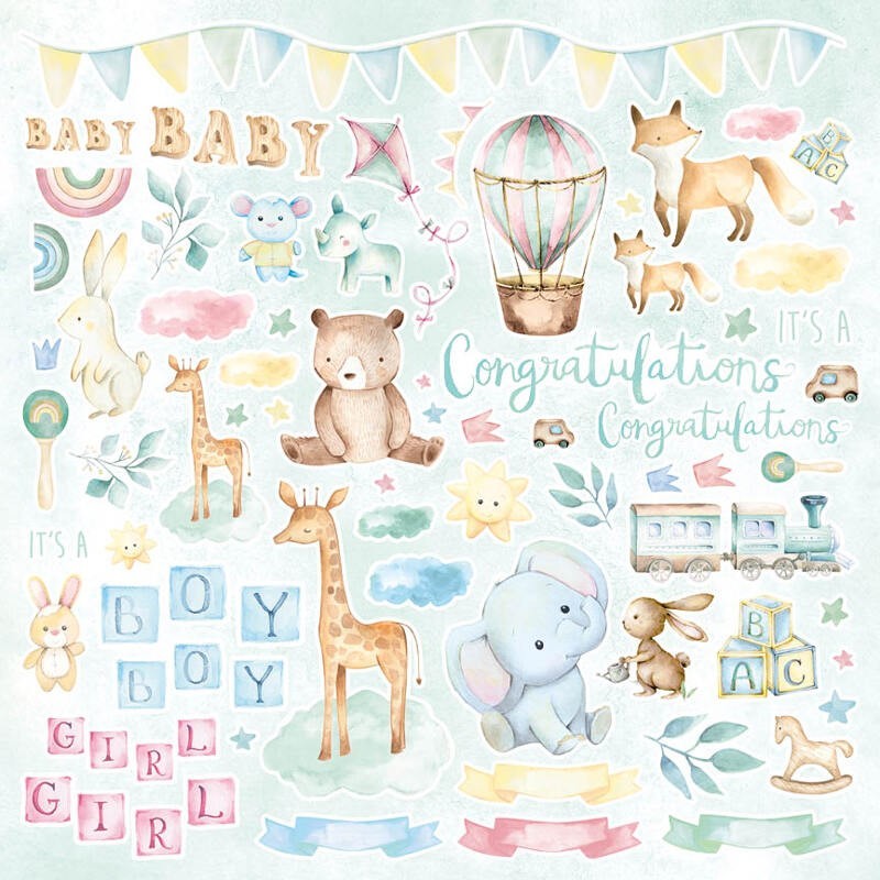 Sada scrapbookových papírů Studio Light, 30,5 x 30,5 cm (12 ks) – narození miminka