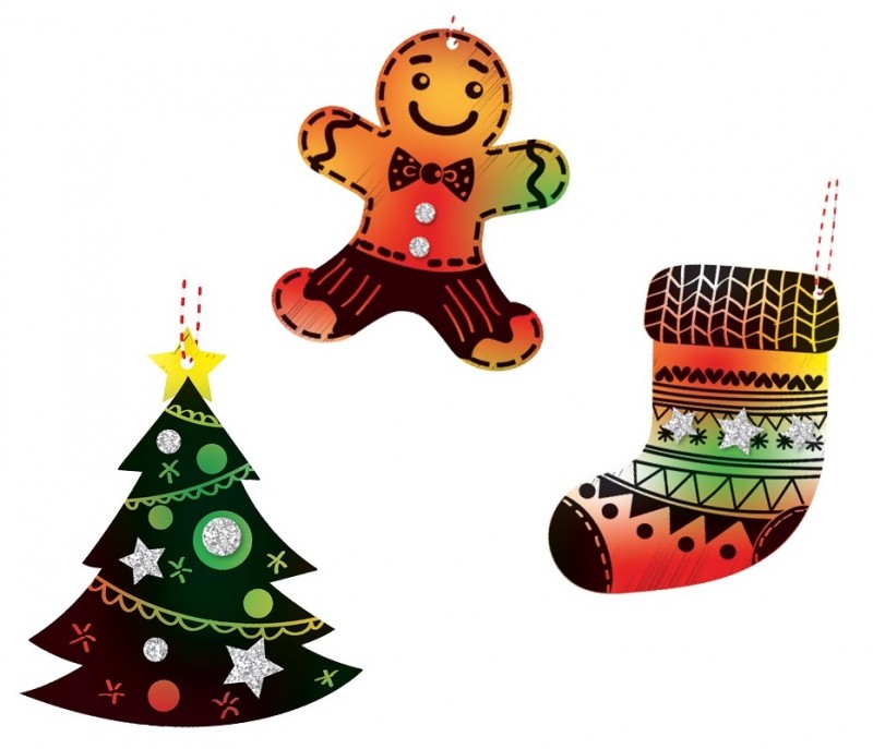 Sada škrabacích obrázků s doplňky 19 x 22 cm - 3 x 4 motivy, Vánoce