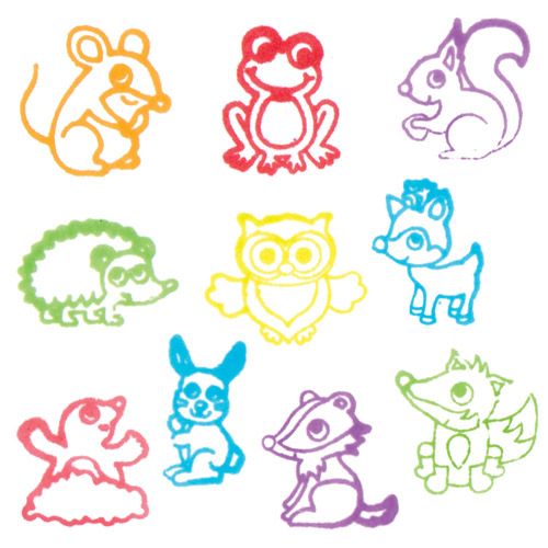 10 různých lesních zvířátek v šesti různých barvách. Razítka jsou skvělými pomocníky při zdobení, vyrábění přáníček a dalším tvoření. Velikost 20mm.