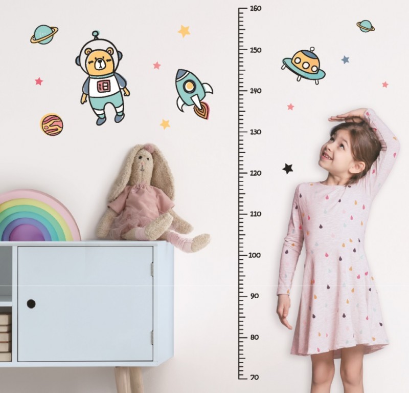 Samolepky na zeď dětský metr - vesmír, do 160 cm