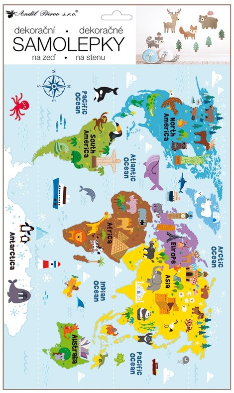 Samolepka na zeď 24 x 42 cm, mapa světa