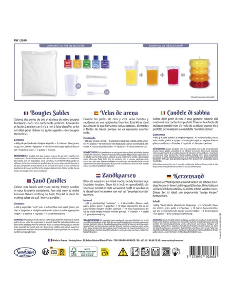 S kreativní sadou Sentosphere Vyrob si sám - pískové svíčky se tvoření stává snadným a zábavným zážitkem pro celou rodinu. Tato originální sada od renomované francouzské značky Sentosphere vám umožní vytvořit krásné a barevné svíčky z rostlinného pískového vosku, který se snadno zpracovává a formuje.