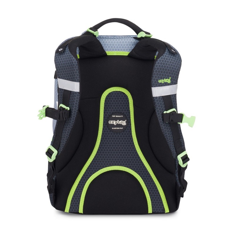 Pevné dno batohu zabraňuje převrhnutí a umožňuje mu stát samostatně. Dvě prostorné kapsy poskytují dostatek místa pro všechny školní potřeby, zatímco boční kapsy na gumu jsou ideální pro láhev na pití, která je vždy snadno dostupná. Přední kapsička je ideální pro uložení menší svačiny. Batoh je vybaven reflexními prvky pro zvýšení bezpečnosti. Je vhodný pro děti s výškou od 136 cm, má délku zádového panelu 43 cm, objem 28 l, hmotnost 960 g a nosnost 8 kg. Rozměry batohu jsou 320*430*200 mm. S tímto batohem bude každý školák připraven do školy s stylem a pohodlím.