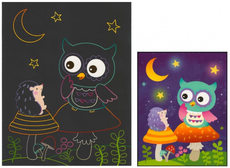 Škrabací obrázky 2 archy 16,5 x 21 cm Sovička