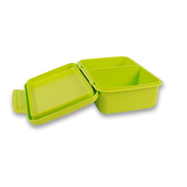 Svačinový box neobsahuje ftaláty, ani změkčovadla. Box je možné mýt v myčce nebo v něm ohřívat svačinky v mikrovlnce.