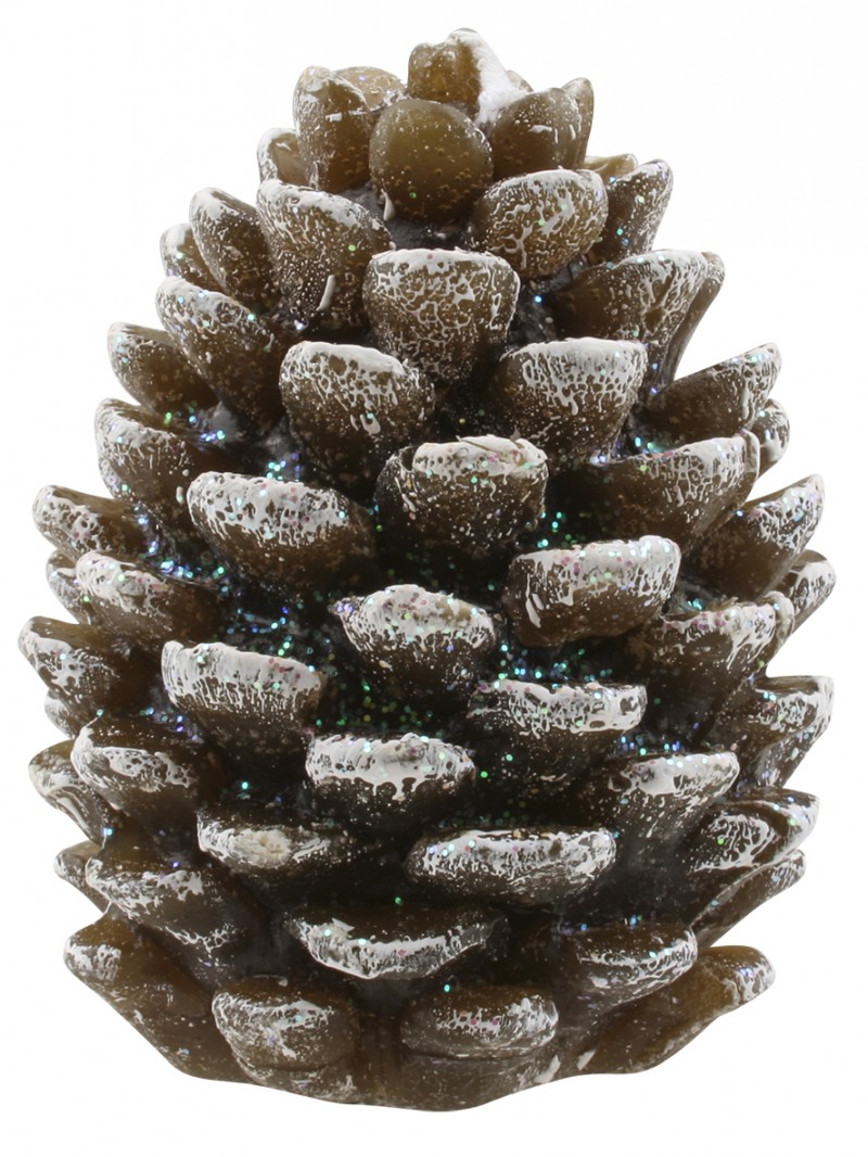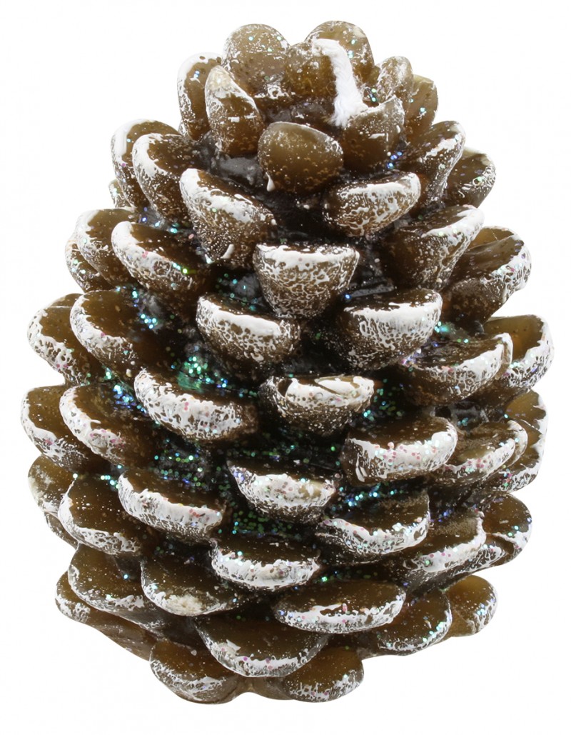 Svíčka šiška hnědá s bílými glitry, 6 x 9 cm