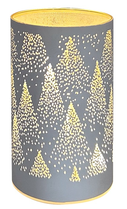 Svítící skleněný válec se stromy – bílý, 15 x 9 cm, teplá bílá, 10 LED, časovač