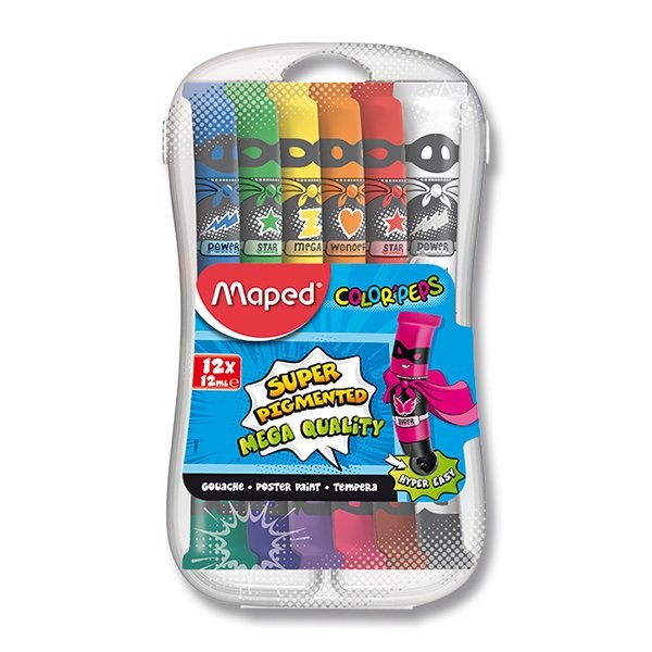 Souprava vodou ředitelných temperových barev v praktickém pevném plastovém pouzdře. Koncentrované pigmentované temperové barvy v tubách s motivem superhrdinů. Snadno mísitelné.