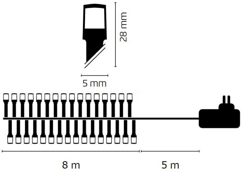 Vánoční osvětlení 8 m – 80 LED, teplá bílá, 8 funkcí + 5 m kabel