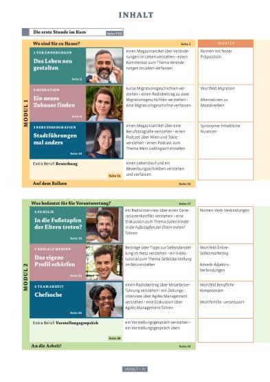 • Extra-Beruf-Seiten:berufsübergreifende Szenarien, Textsorten und Sprachhandlungen