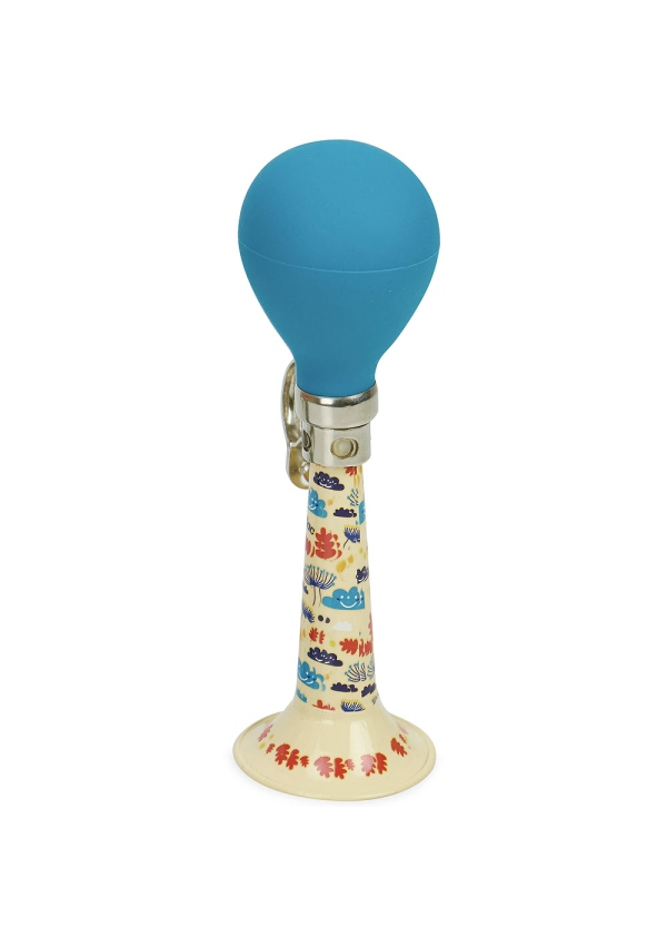 Klakson ve třech barevných provedeních, s kovovým očkem pro připevnění k řidítkům. Hlavní vlastnosti: vhodné na rám dětského kola