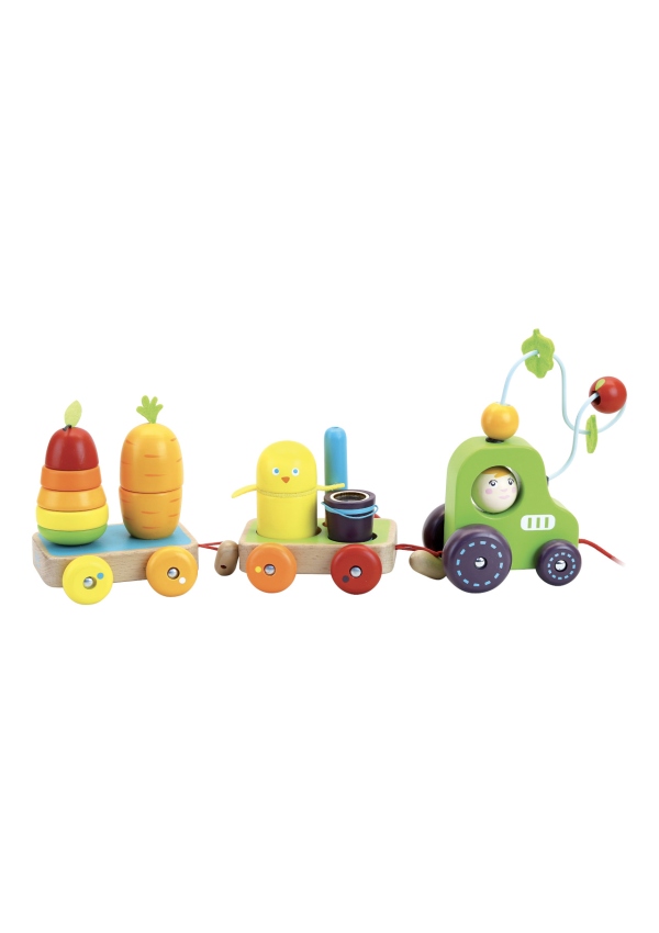 Skládací hruška ukrývá červíka, králík je schovaný v mrkvi, ptáčci pípají, kbelík s kukuřicí štěrká jako rumba koule a traktor má posuvné korálky na drátku ve tvaru ovoce. Hračka, která rozvine představivost, motoriku a zvídavost Vašich dětí. Hlavní vlastnosti: vysoká variabilitavyrobeno ekologicky, šetrně k životnímu prostředí