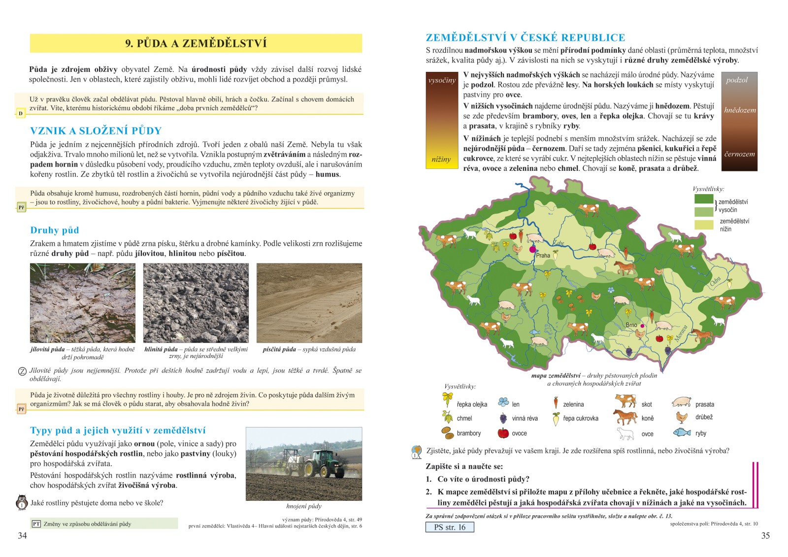 - Předností naší učebnice jsou přehledné mapky jednotlivých krajů, přehledné samostatné mapky povrchu, vodstva, zemědělství, průmyslu,… České republiky, ve kterých můžete z ptačí perspektivy snadno pozorovat konkrétní údaje z probíraného učiva.