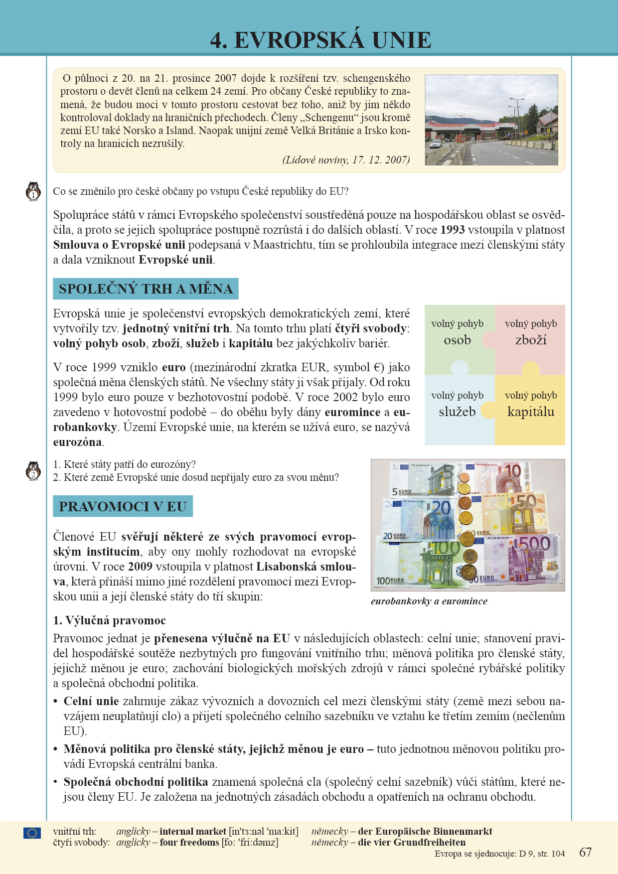 - Kapitola Národní hospodářství vysvětluje pojmy tržní a centrálně plánovaná ekonomika, HDP, nezaměstnanost, inflace, vývoz a dovoz, státní rozpočet a daně. Aktuální články v úvodu jednotlivých kapitol vedou k rozvoji pochopení textu, čtení a získávání informací z grafů a tabulek.