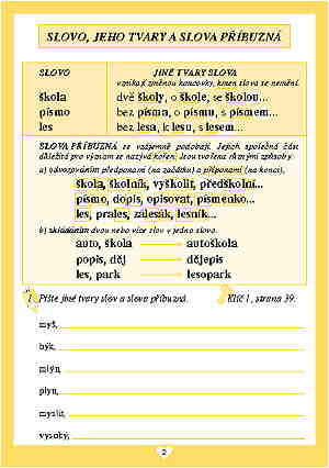 - Obsahuje výklad pojmů slova příbuzná, tvary slov, novátorsky přehledně vysvětluje předpony VY-.