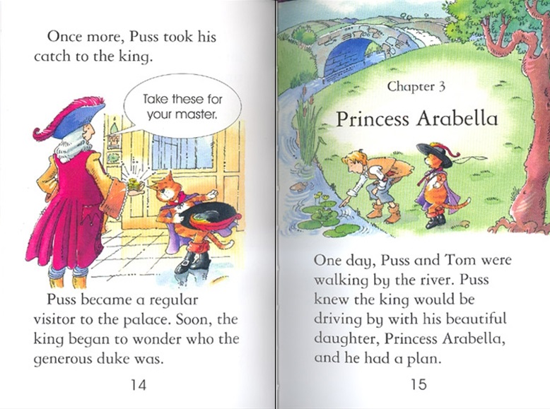 Kocour v botách v angličtině, oblíbený příběh, se zábavnými ilustracemi od Teriho Gowera. Kniha je součástí série pro děti, které zrovna začaly samostatně číst.
