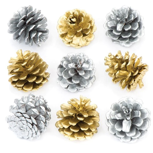 Tyto skutečné borové šišky jsou ideální pro sezónní vyrábění. Velikost kužele 3,5 - 5 cm. 2 barvy - zlatá a stříbrná. Přirozený výrobek se může lišit.