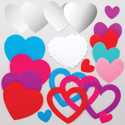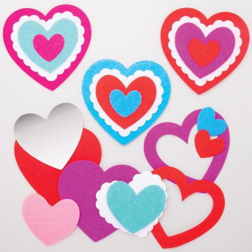 Vyrobte si krásné zrcátko ve tvaru srdce a darujte jej nebo si jej nechte jen tak pro radost. Sada obsahuje části pro výrobu 4 různých zrcátek - růžového, modrého, fialového a červeného. Naleznete zde vše potřebné - flícový základ ve tvaru srdce, samolepicí ozdoby a zrcátko. Velikost je 11cm x 10cm. Balení obsahuje návod, lepidlo není potřeba.